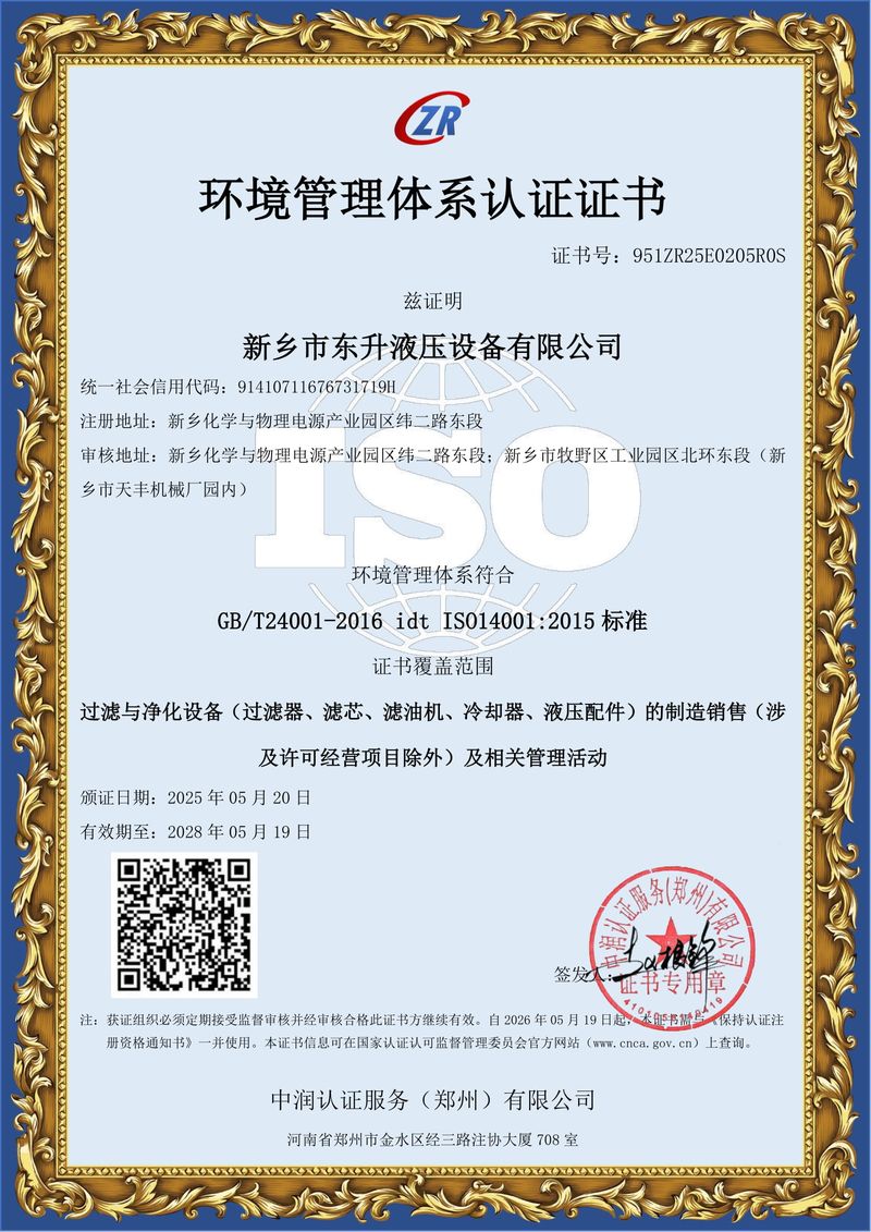 新鄉(xiāng)市東升液壓設(shè)備有限公司是一家從事設(shè)計和制造過濾器、濾芯、濾袋、濾油機、冷卻器、過濾分離器、泵站及其配件、過濾與凈化設(shè)備、環(huán)保設(shè)備、液壓油缸、比例閥、液壓閥、液壓配件的生產(chǎn)企業(yè)。